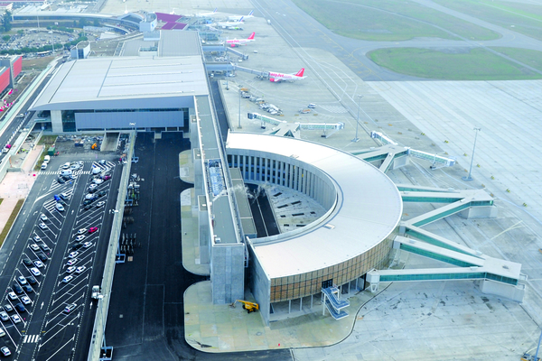 Ce sont en fait deux bâtiments qui ont été nécessaires pour le Hall D : le hall principal et un satellite. Plus de quarante mille mètres carrés ont été ajoutés au soixante mille existants. Ce sont donc dix hectares que comptera l’aéroport à l’ouverture du Hall D.