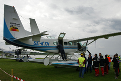Demain (vendredi 14 mai), se tiendront des conférences sur le futur du transport en hydravion. Des délégations du monde entier se sont déplacées pour parler des règlementations et d'éventuelles modifications qui permettraient aux hydravions de renaître. Cet événement doit commencer à 9h et se terminer avant le meeting aérien de demain à 16h. Les conférences, l'après-midi, auraient dû être présidées par Dornier, qui pourrait ne pas être là ...