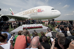 Cérémonie de l'annonce de l'achat de 32 Airbus A380 par Emirates lors de l'ILA Berlin Air Show 2010