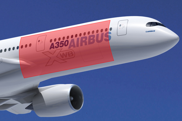 Airbus a fait savoir que son partenaire dans le programme A350 XWB, Premium Aerotec, avait terminé la construction sur son site de Nordenham en Allemagne du plus grand panneau en fibre de carbone pour l'A350-900 XWB de l'avionneur européen. Cette partie du fuselage située à l'avant de l'avion (en rouge sur le schéma) mesure 93 m² et devra se soumettre à des inspections aux ultrasons et sera percé et découpé avant de rejoindre les autres panneaux qui formeront la section 13-14 de la cabine.