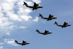 C'était la première fois que les cinq A400M se trouvaient en vol en même temps pour un vol en formation. Il y a quelques années, Airbus avait fait de même avec ses A380.