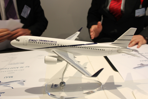 La société CALC, qui est une entreprise de leasing basée à Hong Kong, a signé un engagement d'achat avec le constructeur Airbus. Cette commande porte sur trente six appareils de la famille des Airbus A320. Huit des trentes six aéronefs commandés seront des Airbus A321. Les compagnies qui loueront chez CALC pourront choisir les des avions avec les nouveaux sharklets réduisant ainsi la consommation.
