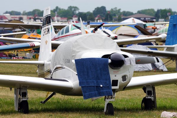 Par contre, le parking des avions se remplit déjà. On me dit que trois mille appareils sont arrivés. J'en vois pas mal, mais pas autant. Trois mille? Où sont-ils ? Je ne les vois pas. Je passe devant les "Warbirds" déjà nombreux, deux jours avant le début du salon. Il y a aussi les constructeurs amateurs qui exposent leurs aéronefs. Les gros avionneurs, tels que Cessna ou Hawker Beechcraft, sont là aussi. Eux ont fini d'installer leurs avions en exposition.