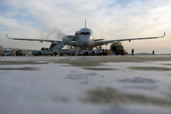 Quinze jours après les tests à haute altitude (voir actualité), l'Airbus A350XWB, msn 3, a quitté la Bolivie pour se rendre à Iqaluit au Canada pour débuter les tests par temps froid.