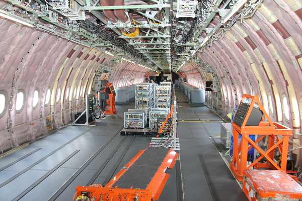 Cet appareil est l'un des cinq A350 de test mais il est le plus léger avec seulement une tonne d'instrumentations d'essai. L'intérieur ne présente pas de cabine traditionnelle, sans siège passager ni même de coffre à bagages.