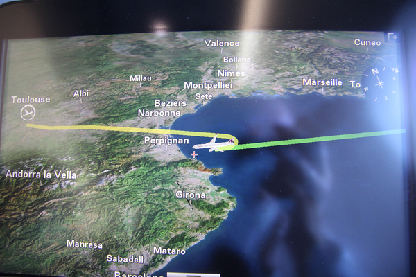 L’appareil a effectué un demi tour au-dessus de la mer Méditerranée, au large de la ville de Perpignan pour longer les Pyrénées jusqu'à revenir à son point de départ.