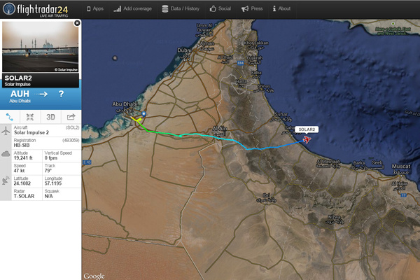 Bertrand Piccard pendra le relais à Muscat et effectuera le second vol jusqu'en Inde. Les deux pilotes se relayeront ainsi à bord du monoplace solaire jusqu'à la fin du voyage qui est prévu dans environ 5 mois.