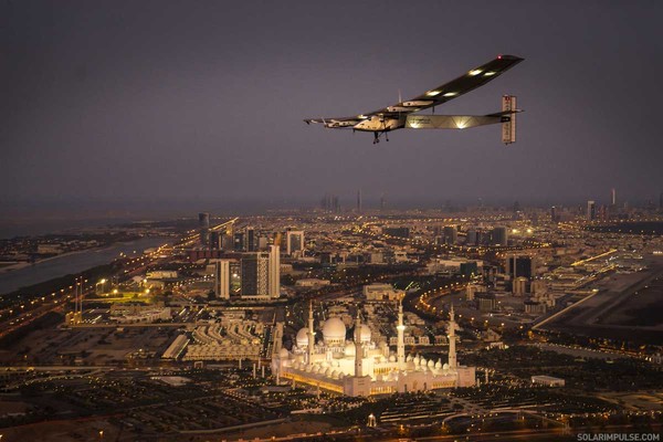 Le 09 mars 2015, l'avion solaire a décollé d'Abu Dhabi pour son tour du monde sans une goûte de carburant.