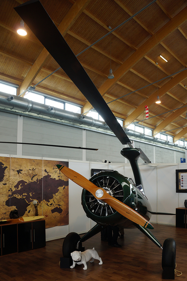 Barry Jones expose le Bulldog, un autogire au look rétro et reprenant la technologie du GyroJet présenté à Farnborough en 2010.
