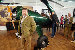Au détour d'une des allées du salon Aero 2015 à Friedrichshafen, on ne peut pas passer à côté de ce stand : drapeaux britanniques usagés un peu partout, vieux fauteuils club en beau cuir patiné, personnages en costumes d'époque, on baigne dans une ambiance qu'on qualifierait de rétro ; et c'est ce qui est recherché sur le stand de Bulldog.