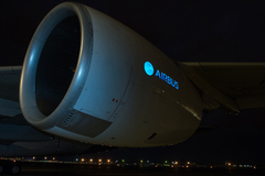Serge Rière : Oui il s'agit de l'Airbus A380, immatriculé F-WOWW, visible actuellement au salon Bourget, dont la nacelle du moteur extérieur a été équipée du marquage électroluminescent affichant le logo d'Airbus. Le premier vol a eu lieu dans la nuit du 8 juin 2015. Grâce à ce vol, Aircelle a pu démontrer la luminosité, la clarté et la lisibilité du marquage, confirmant ainsi son exceptionnelle visibilité à différentes distances et dans des conditions variées. (Voir la vidéo du vol)