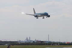 Découvrez en image la démonstration en vol du Boeing 787-9 aux couleurs de Vietnam Airlines lors du deuxième jour du salon aéronautique de Paris Le Bourget.