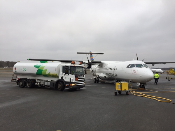 Un ATR 72-600 de la compagnie aérienne suédoise BRA (anciennement Braathens Regional) a décollé aujourd'hui de l'aéroport de Stockholm-Bromma à destination de Umeå avec dans ses réservoirs un mélange composé à 45 % d'huile de cuisson recyclée. Cet évènement marque le tout premier vol d'un ATR propulsé par du biocarburant.