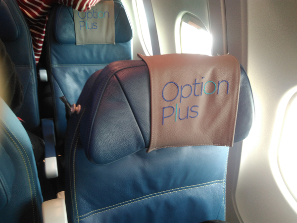 Je me suis installé sur mon siège d’un pitch de 32 pouces (81 cm) et j’ai rencontré mes deux voisins de voyage. Ma première réaction en les rencontrant fût "On va se tenir chaud". En effet nous étions trois hommes les uns à côté des autres mesurant 1m90 et pesant environ 90 kilo chacun : "nous allions être serrés". Malgré ce désagrément, j’ai pu profiter du paysage car j’étais au niveau du hublot.