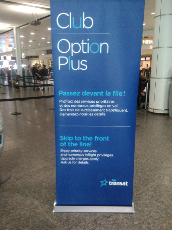 J’ai passé les contrôles de sécurité et je me suis dirigé vers ma porte d’embarquement dans l’espace “Air Transat” du terminal de l’aéroport.