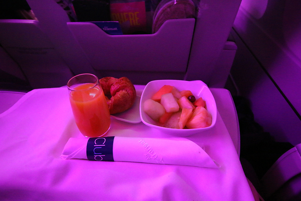 Après un petit repos de 4 heures, j’ai été réveillé par l’odeur du petit déjeuné qui allait être servi : croissant, jus de fruit, salade de fruit et café.