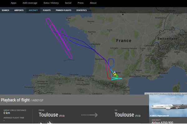 Le 24 mai dernier, le premier Airbus A350-900 XWB destiné à la compagnie américaine, Delta Air Lines, a effectué son premier vol d'essais. Le vol, AIB01GP a décollé de l'aéroport de Toulouse à 10h24 et a atterri à 16h01.