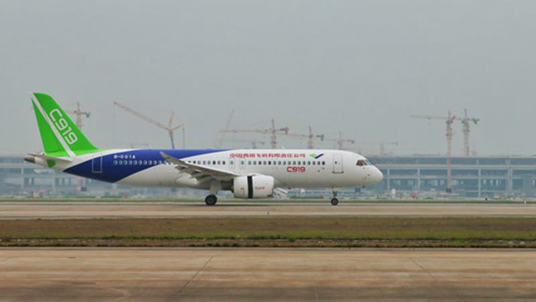 Le premier C919 du constructeur aéronautique chinois "Commercial Aircraft Corporation of China" (COMAC) a effectué son premier vol sans incident. L'appareil a décollé de l'aéroport de Shanghai avec à son bord deux pilotes d'essais et des ingénieurs.