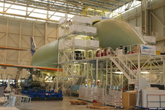 Le second modèle quant à lui est au début de sa vie. En effet, "les compagnons" d'Airbus sont en train d'installer la structure même de l'avion et il est même difficile de croire qu'il s'agit d'un avion.