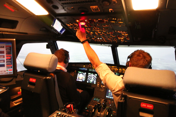 Puis c'est au tour de la pratique qui est donc effectuée sur un simulateur Airbus A320, la compagnie easyJet n'exploitant que des appareils de la famille Airbus A320.