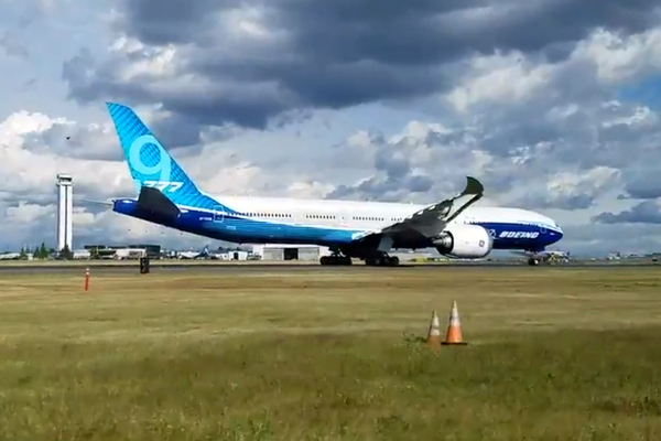 Boeing a publié une vidéo dans laquelle le Boeing 777-9X effectuait ses premiers tests de roulage sur la plateforme d'Everett, près de Seattle, dans l'état de Washington (nord ouest des Etats-Unis).