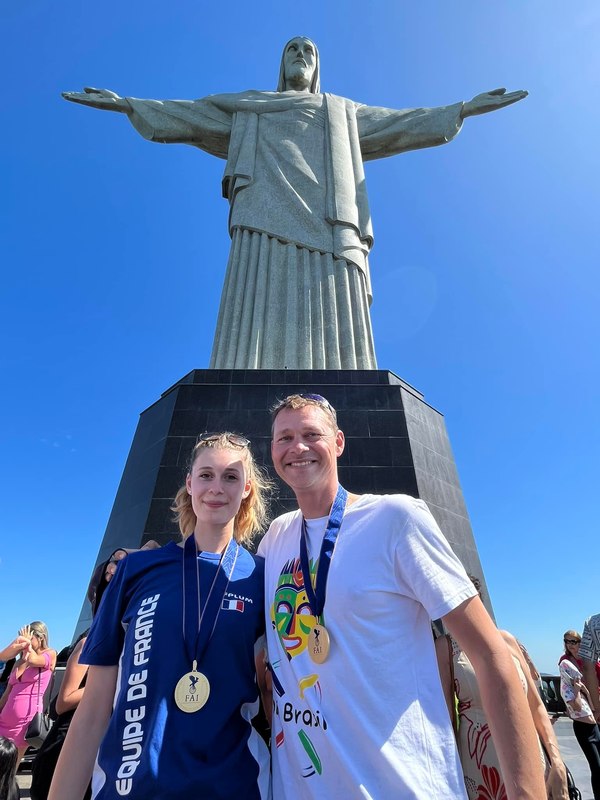 Le père et la fille ont été sacrés champions du monde de paramoteur PL2 à Saquarema au Brésil. Les français, Stéphane Clavurier et Cyril Pasquier, terminent deuxième de la même catégorie.