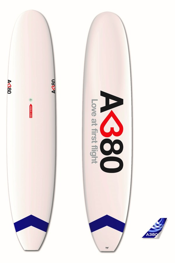 De plus, certaines pièces ont été peintes par des artistes contemporains pour en faire des œuvres uniques ; d’autres ont été fabriquées à partir de chutes de matière première pour l’A380, et ont permis de donner vie à des longboards, des skates ou des surfs.