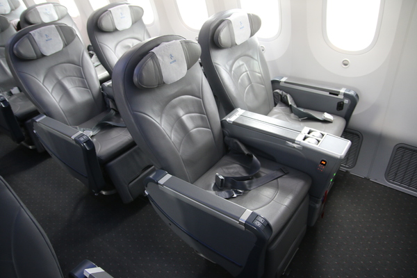 La configuration de la cabine économique est de 9 personnes de front en 3-3-3. Les sièges sont des sièges standards en cuir avec un espace entre deux rangs de 31 pouces (79 cm) et une largeur de siège de 17.2 pouces (44 cm). Chaque siège possède un système de divertissement en vol (IFE) fixé dans le repose-tête du siège de devant. Une prise USB est disponible pour brancher son appareil mobile.