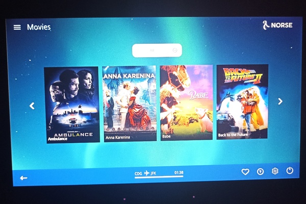 Vingt minutes après le décollage, nous avons découvert les divertissements contenus dans l’IFE. Le contenu de l'IFE est assez minimal, les passagers ont accès à des films, des dessins animés et des informations sur le vol. Il n'y a pas de jeu, ni de musique.
