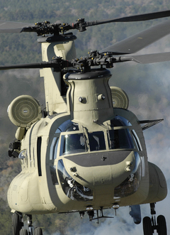 The Boeing CH-47 Chinook has been a mainstay of the U.S. Army's helicopter fleet since its original deployment to Vietnam in the early 1960s. The helicopter is principally used for the movement of troops, artillery, ammunition, fuel, water, supplies and equipment on the battlefield. It is also used for disaster relief, medical evacuations, fire fighting, parachute drops, and search and rescue. A central element in the Gulf War, CH-47s continue to be the standard for the U.S. Army in the global campaign against terrorism.