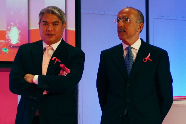 Filippo Bagnato d'ATR et Gerald Lee d'Azul à la cérémonie de livraison de l'ATR rose d'Azul contre le cancer du sein