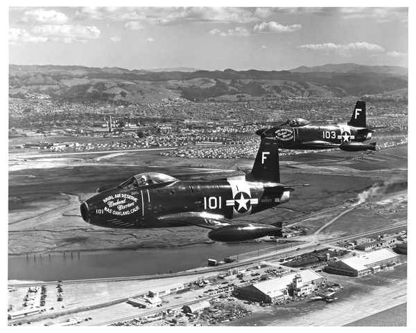 Patrouille de deux North American FJ-1 Fury du Naval Air Reserve, 1955 (Oakland)